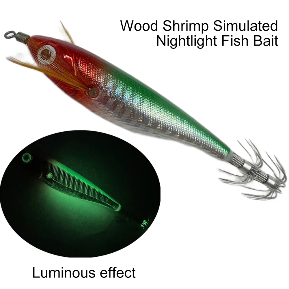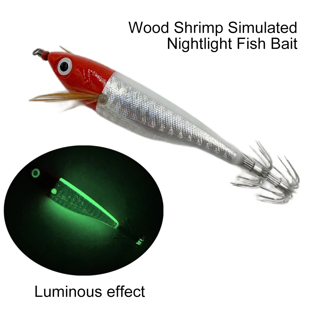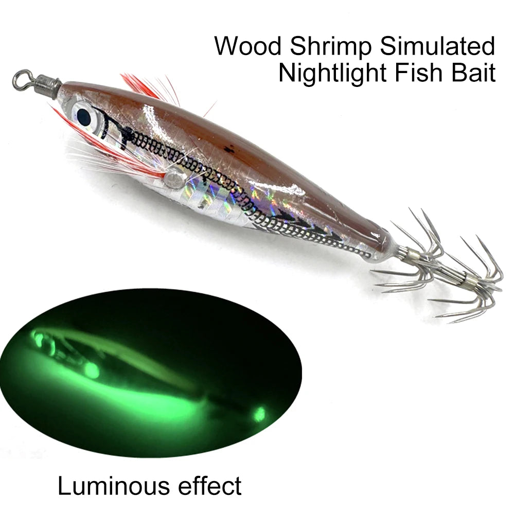 Fluorescent Fishing Lure ABS Luminous Jigging Bait Horizontal Luminous Floating Lure for Night Fishing Freshwater Features: 1. Precision: This squid fishing lure features -guided accuracy, ensuring precise targeting of squid and cuttlefish for successful fishing experiences. 2. Realistic Design: The lifelike design of these luminous squid hooks mimics the appearance and movement of real shrimp, attracting the attention of squid and enhancing your chances of a catch. 3. : Made from high-quality ABS material, these seawater fishing baits are built to withstand tough fishing conditions in deep sea or coastal environments. They offer long-lasting durability for frequent use. 4. Enhanced Hooking Power: The glowing prawn hook shape and sharpness provide optimal strength and penetration, allowing for effective hooking and preventing escape once squid or cuttlefish is caught. 5. Versatile: Whether you're a professional angler or a leisure fisherman, these octopus fishing baits are essential tools for diversifying your fishing experience. They increase your chances of catching abundant fish while providing an enjoyable fishing adventure.