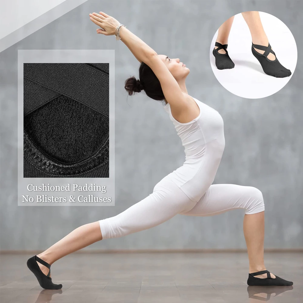 2. 【CROSS STRAP DESIGN】- Instep ballet-style cross strap design, elegant and chic, help to keep the pilates socks in place and prevent them from sliding around on your feet while in use, let you exercise without burden, add the sense of fashion to your workout.
