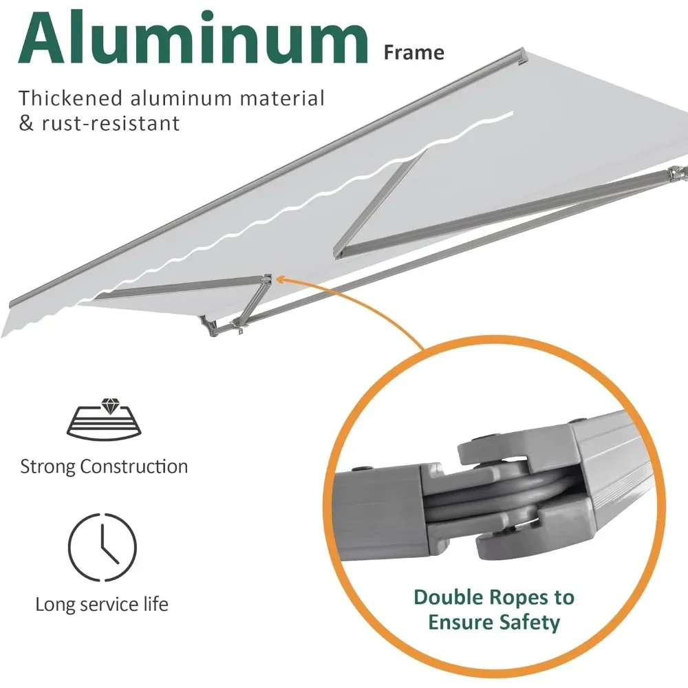 [Solid Structure] - The aluminum-steel structure makes the awning sturdy, and double-rope bars provide extra safety when retracting the canopy.