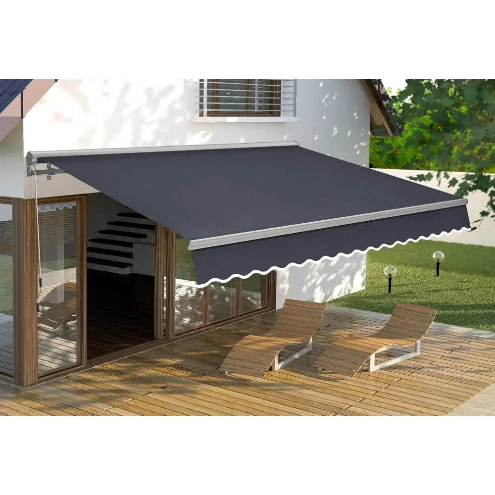 10' x 8' Manual Retractable Patio Awning with Half-Cassette – Sunshade Canopy for Durable Outdoor Shade, Easy Operation & Weath