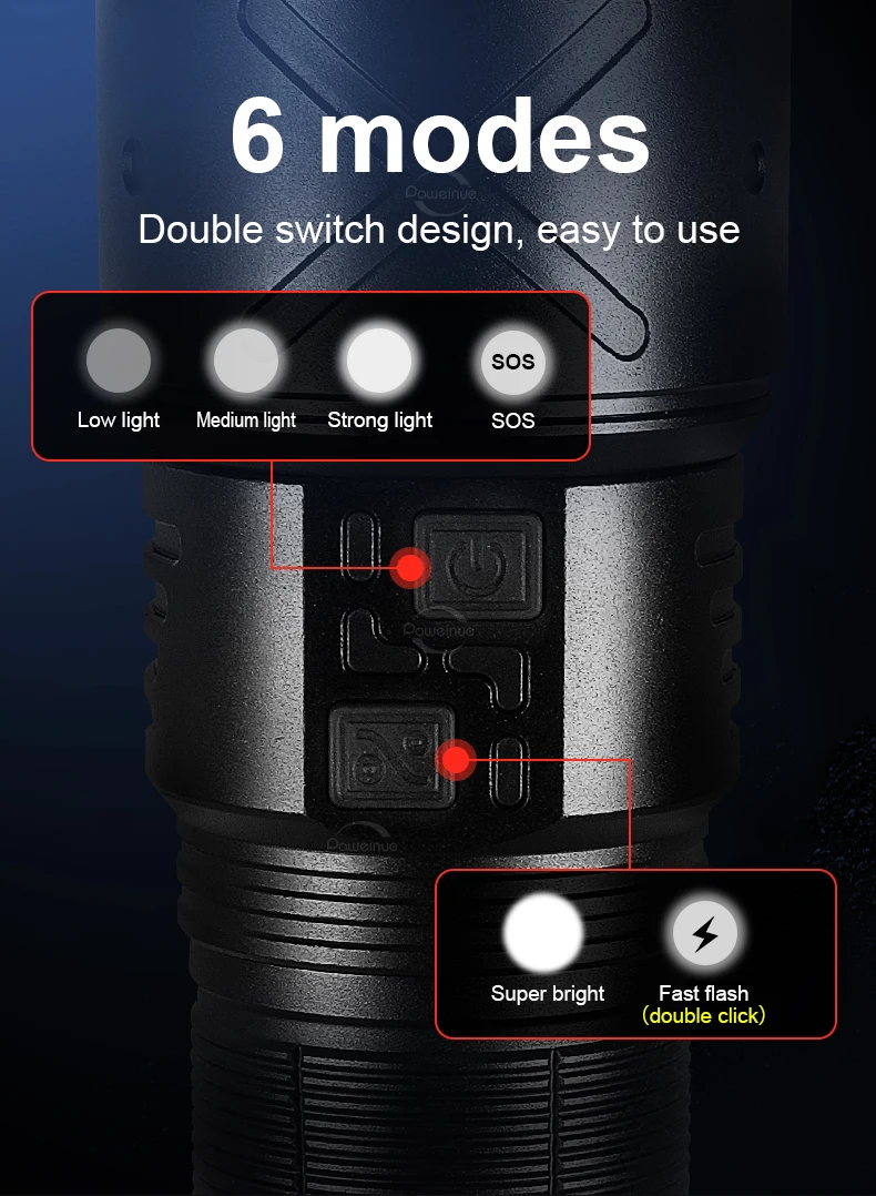 4. A separate button is designed for the super bright light mode, and you can quickly turn on the super bright light with one click! Provides ultimate brightness!