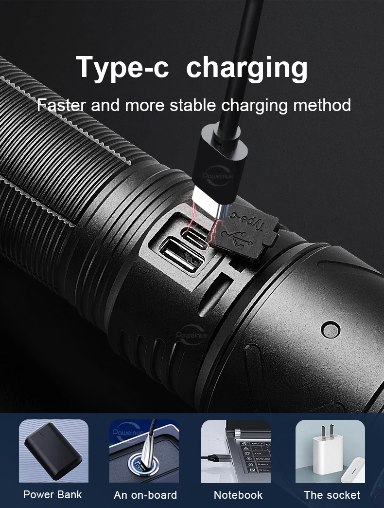 10000mAh High Power LED Flashlights Type-C Rechargeable LED Torch 5000M Ultra Powerful Flashlight Outdoor Tactical Lantern