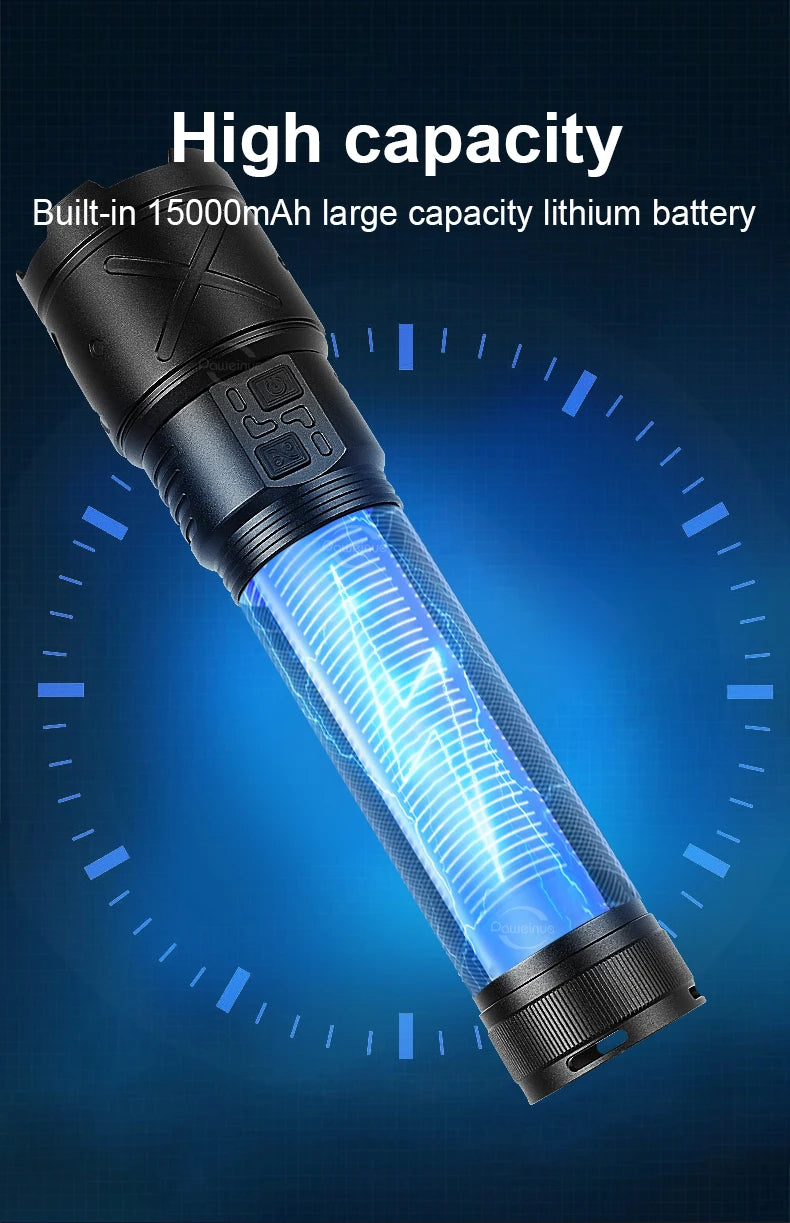 1500W-15000mAh:Extra large flashlight + charging cable + strap (built-in 15000mAh)