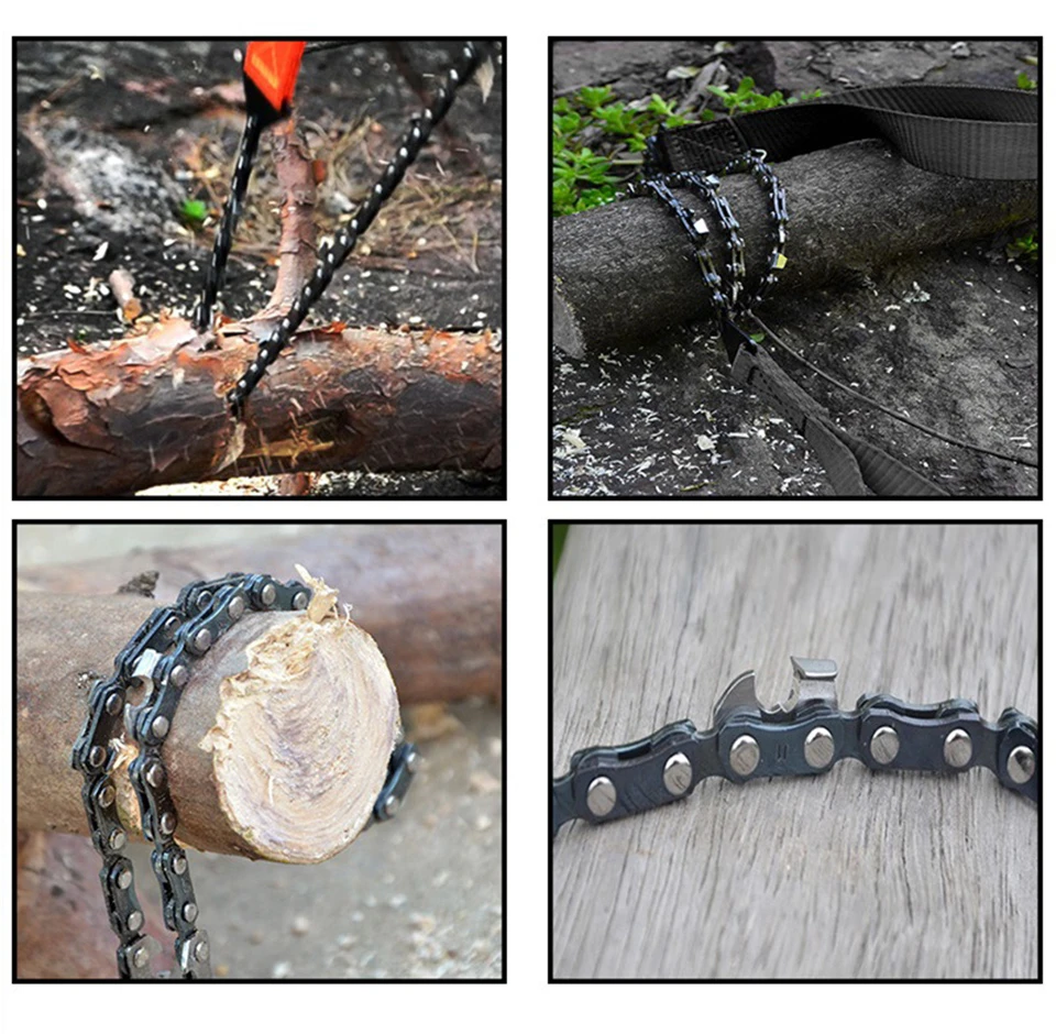 This hand-held wire saw is incisive, small in size, light in weight and easy to carry. It can cut wood, plastics, bone, rubber, soft metal and other materials. It is a nice tool for wild survival and garden management.