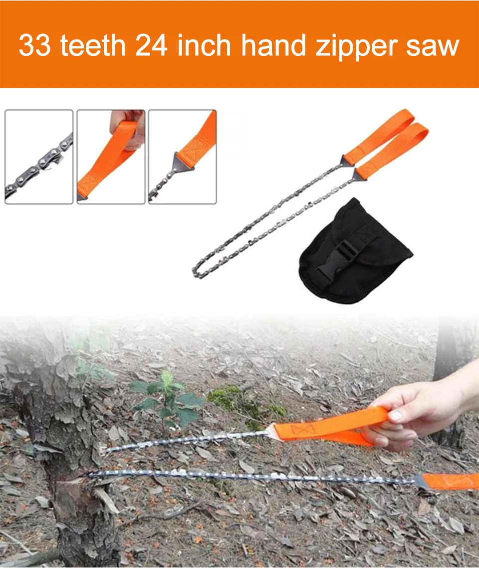 11/33 Tooth Portable Survival Chain Saw Chainsaws Emergency Camping Hiking Tool Pocket Hand Tool Pouch Outdoor Pocket Chain Saw