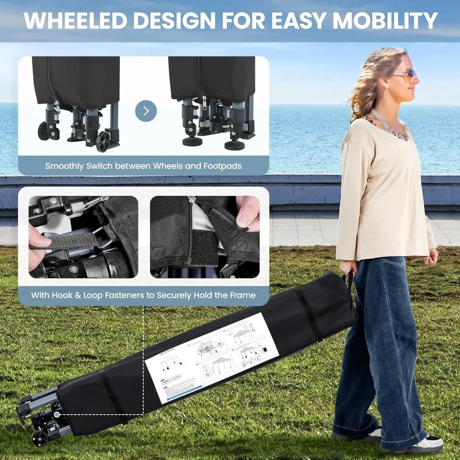 - Effortless Mobility: Two tent legs feature wheels, and you can lift another side of the tent and move it without dismantling. They can also be folded to become foot pads and ensure the tent stands stable
