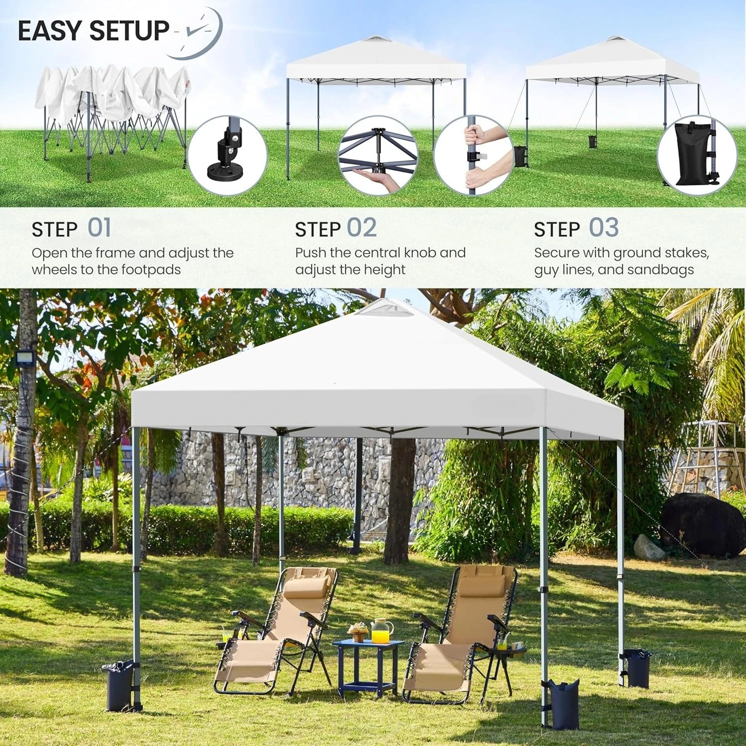 12x12 Pop-up Canopy Tent w/ 2 Integrated Wheels for Mobility, Waterpoof & Heavy Duty, Instant Sun Shelter with Carry Bag, Weight Bags for Outdoor Camping Beach Patio Parties, White