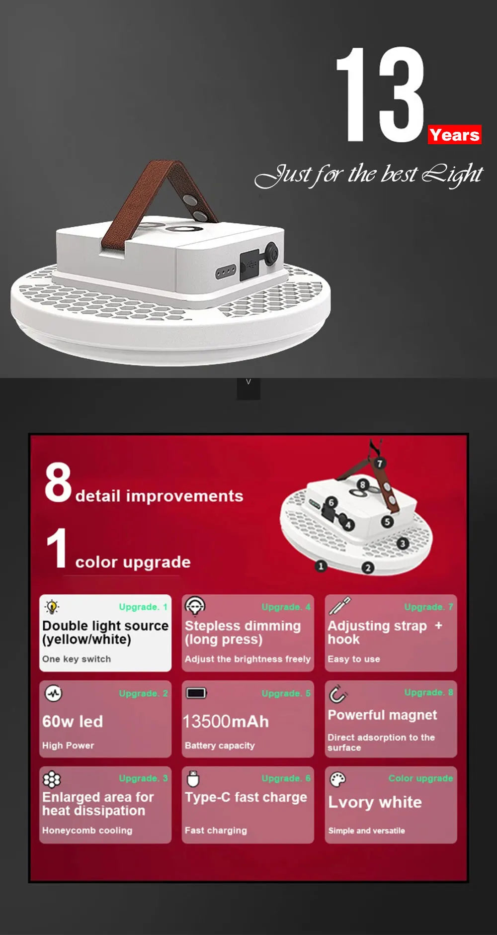 2, About the color. We have added the ivory white lamp body color, the workmanship is more refined, and the appearance is more beautiful.