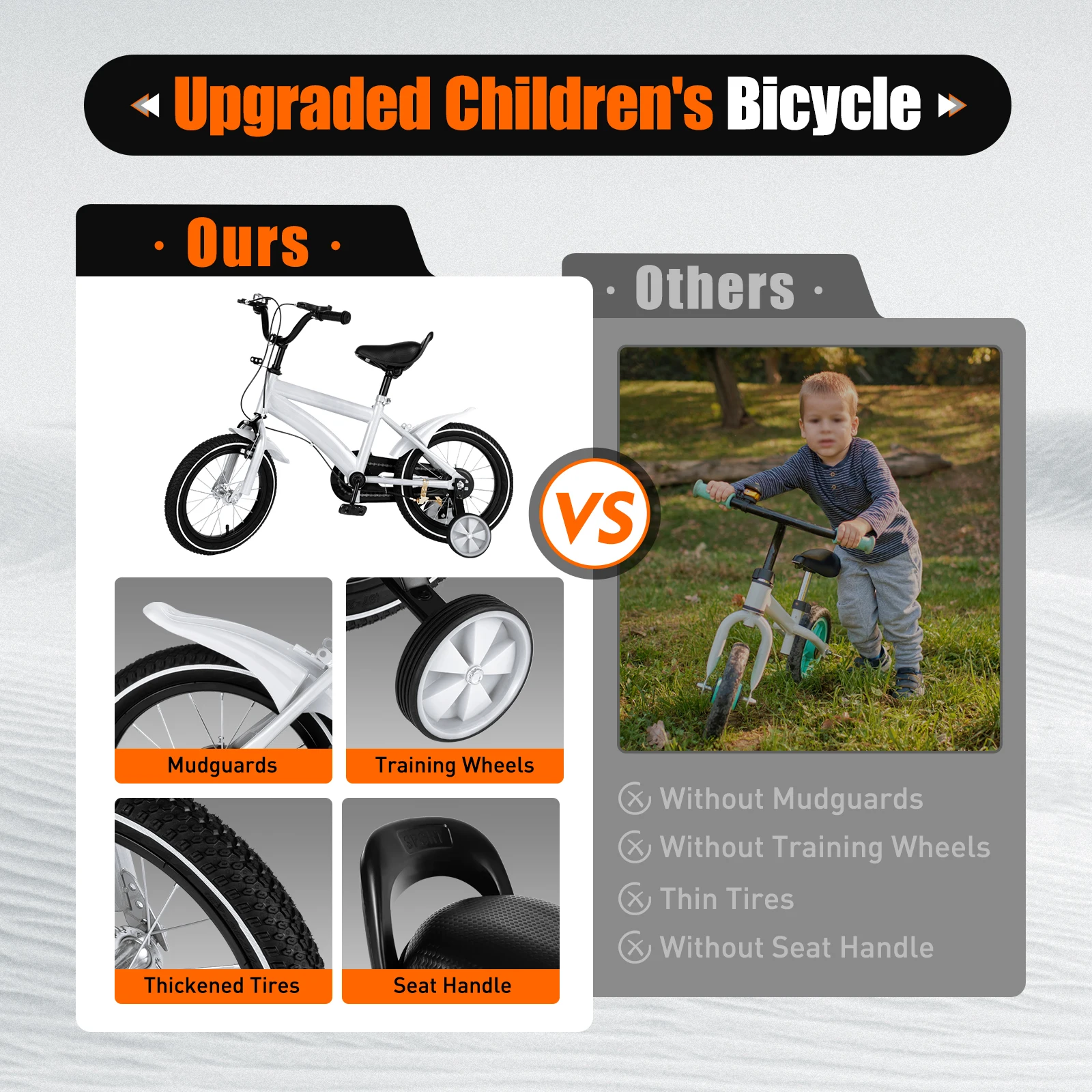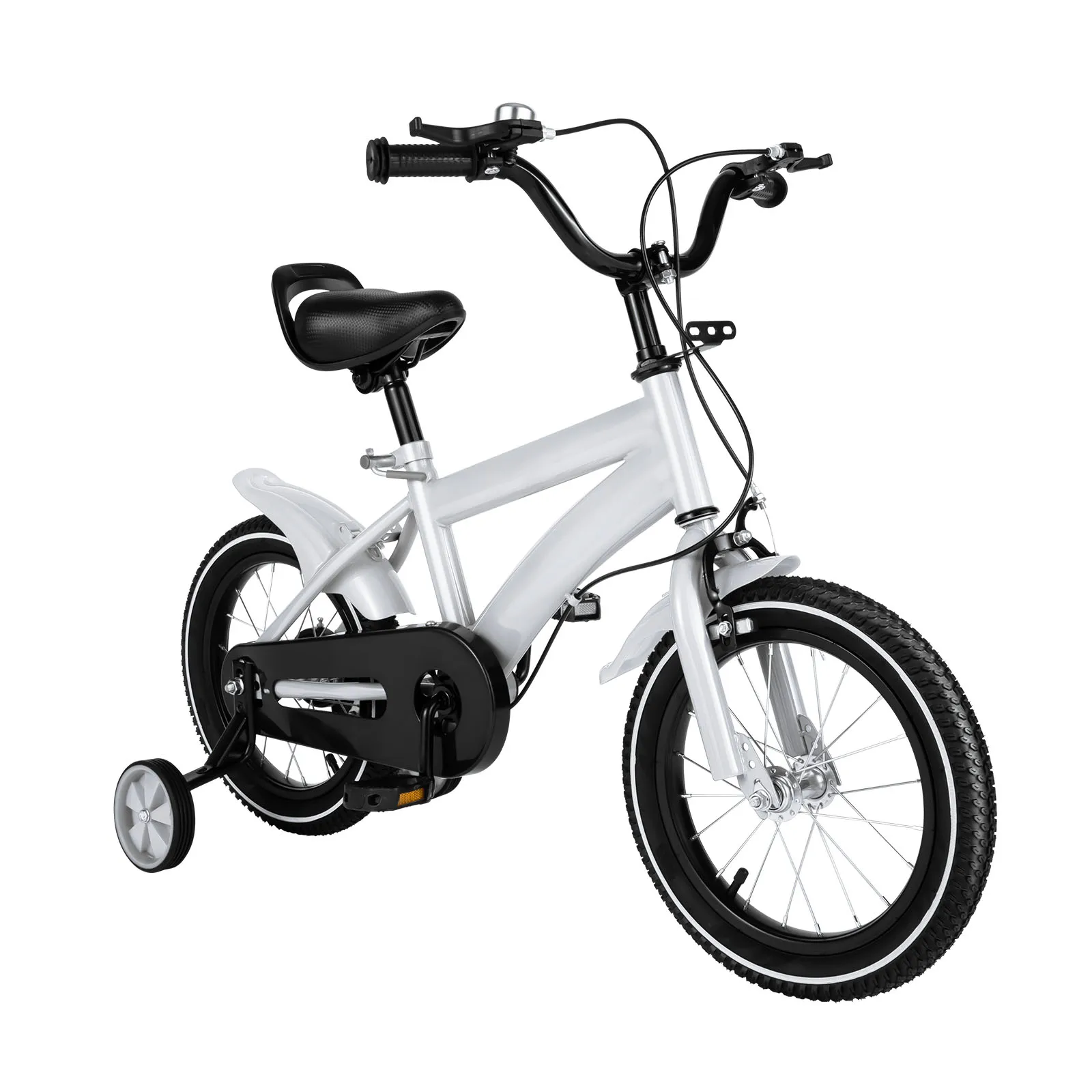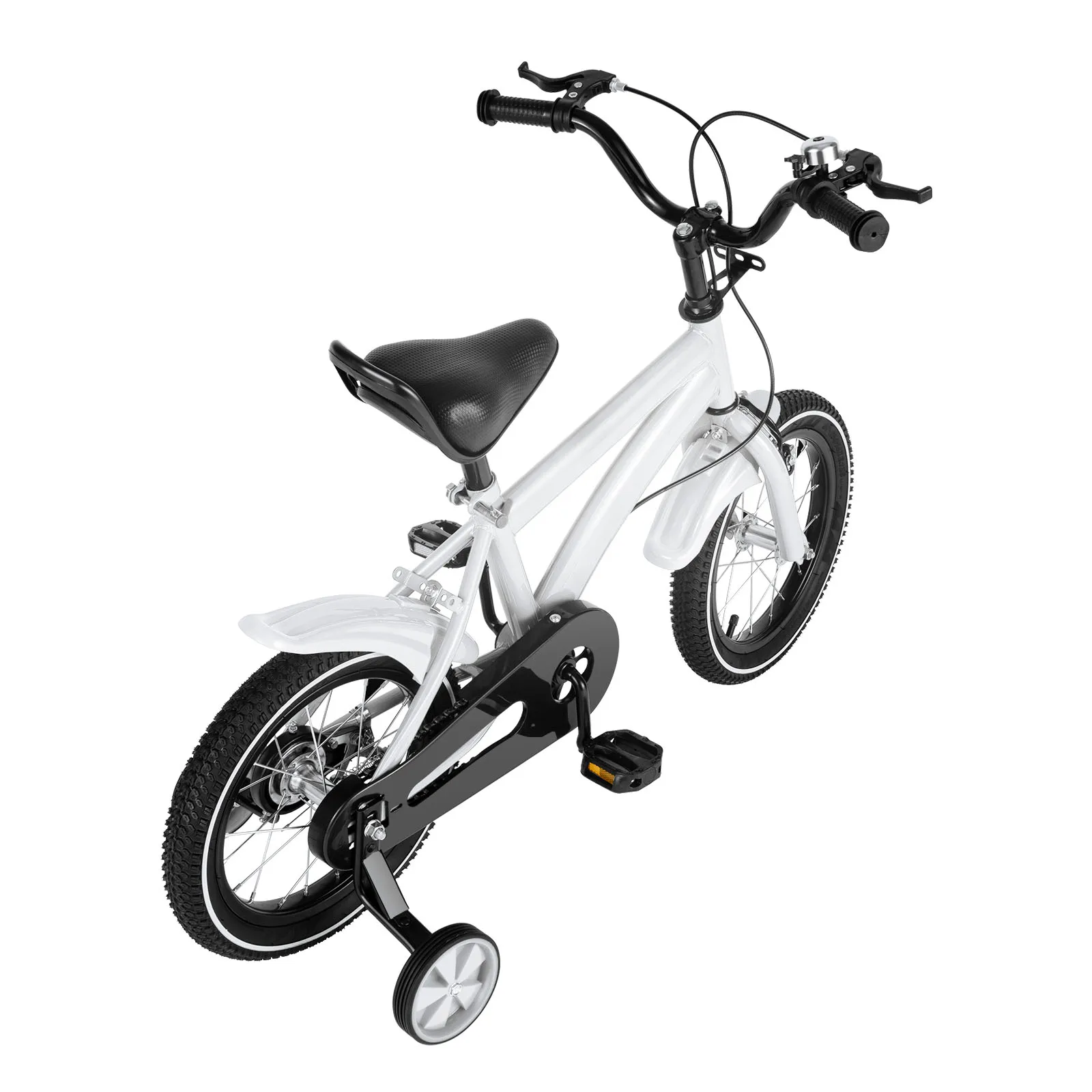 14" Children's Bicycle White/Red/Blue/Yellow Stabilized Child Training Bike with Handbrake Removable Wheels for Kids 3-6 Years