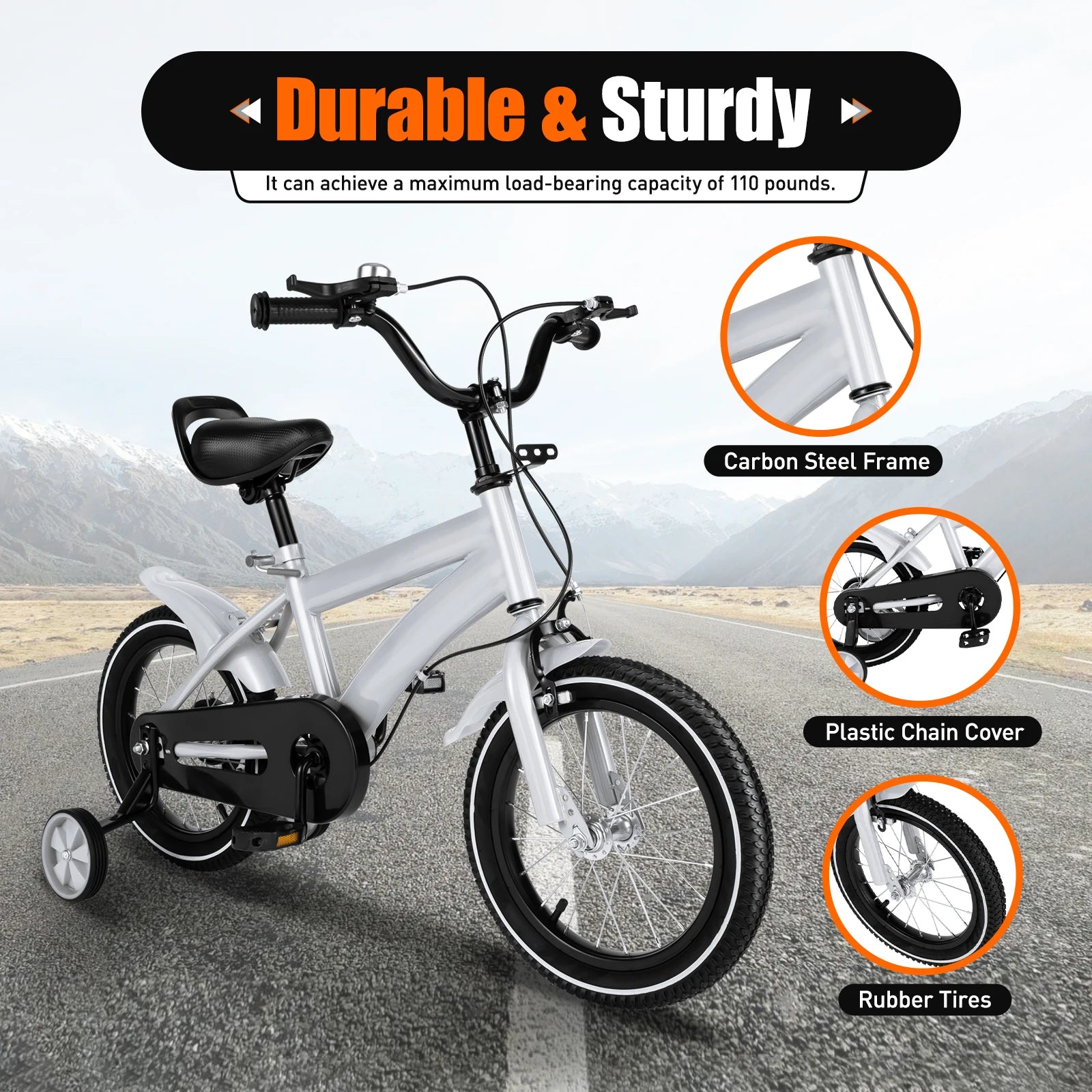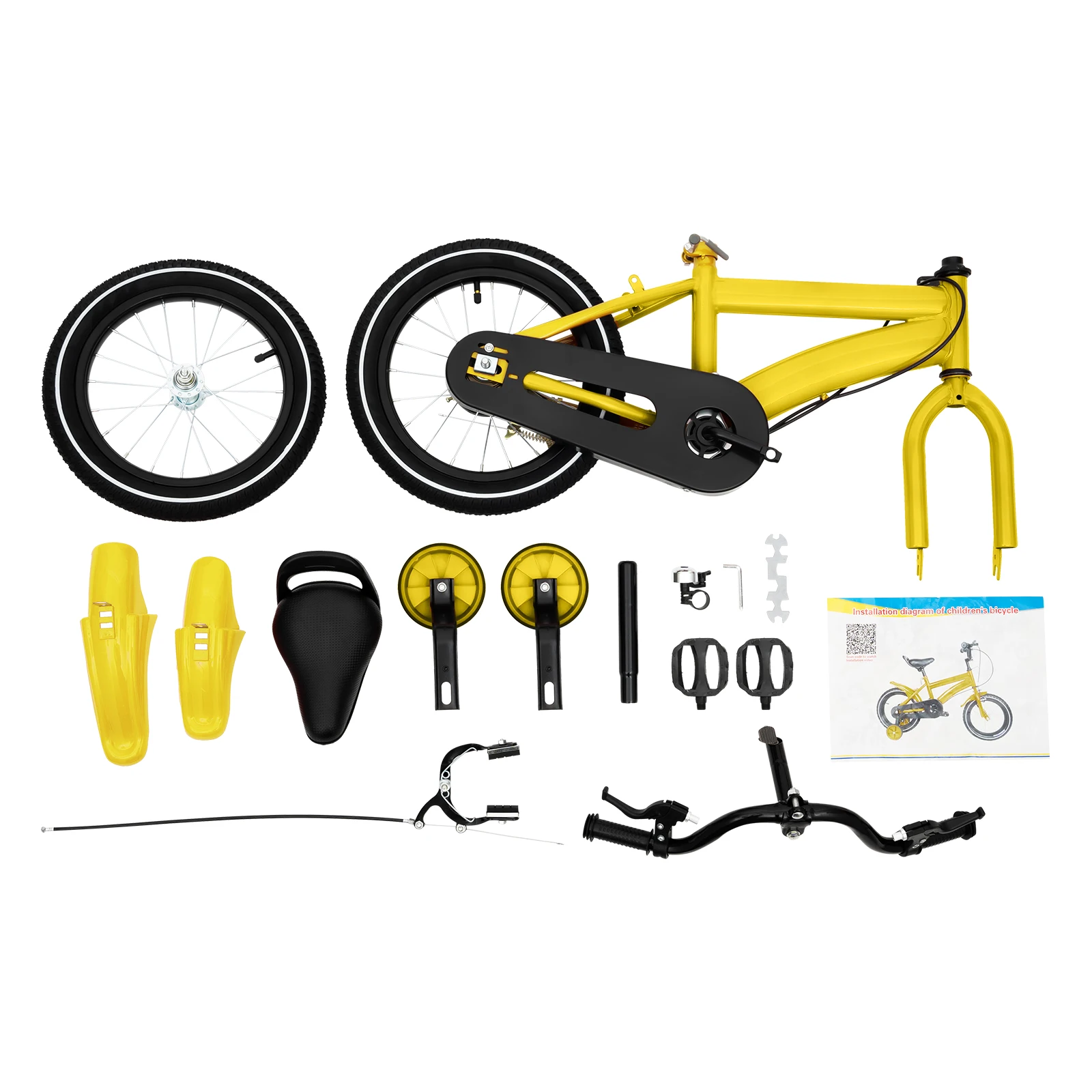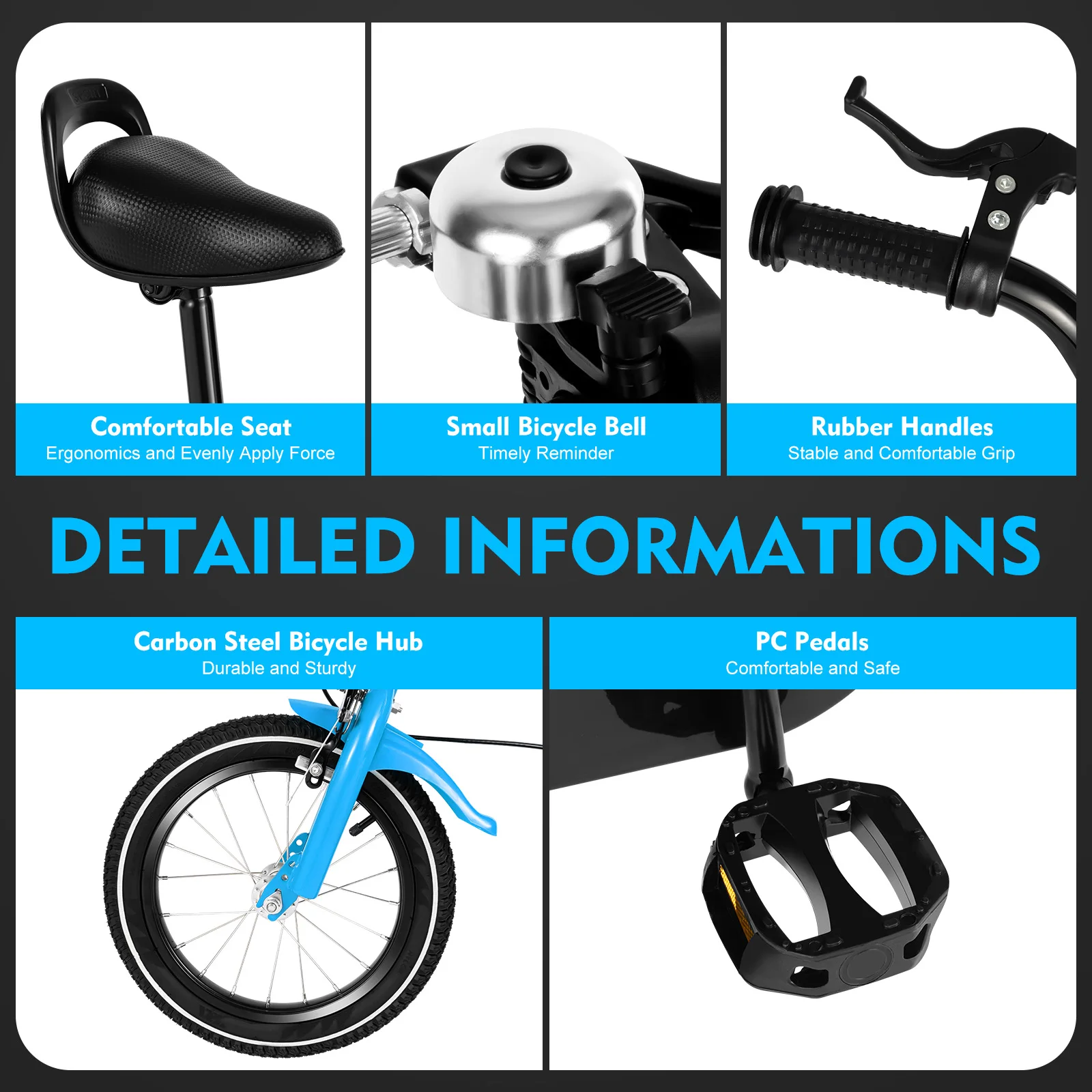 14" Children's Bicycle White/Red/Blue/Yellow Stabilized Child Training Bike with Handbrake Removable Wheels for Kids 3-6 Years