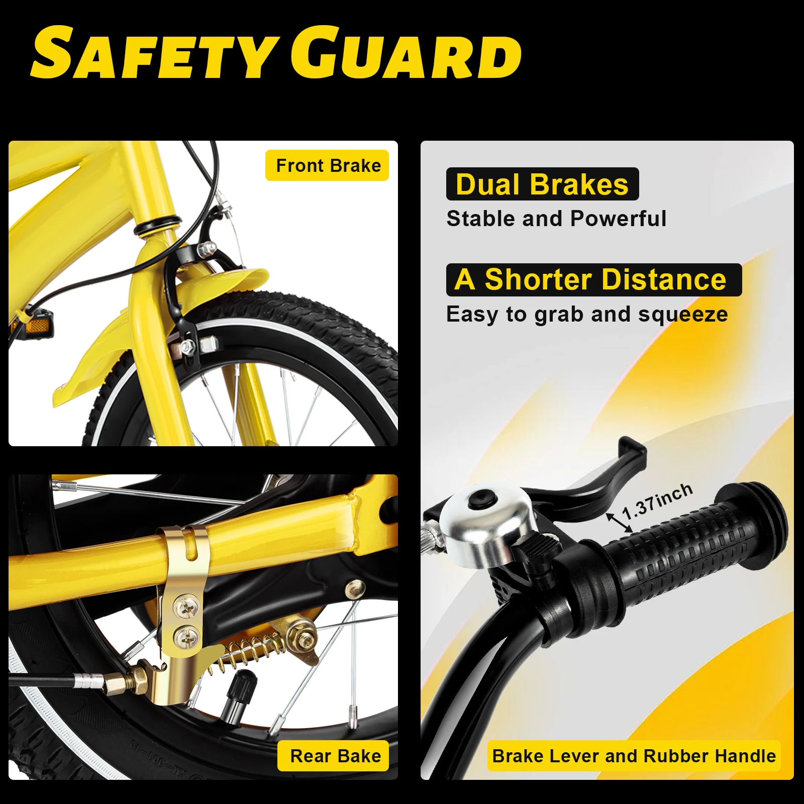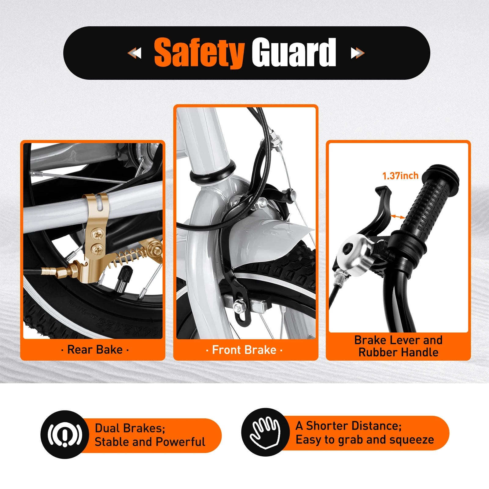 Safe and Reliable: This bike is equipped with a high-sensitivity dual brake system in front and behind. Its braking action is very reliable and it has a chain cover to prevent the chain from hurting the child's feet.