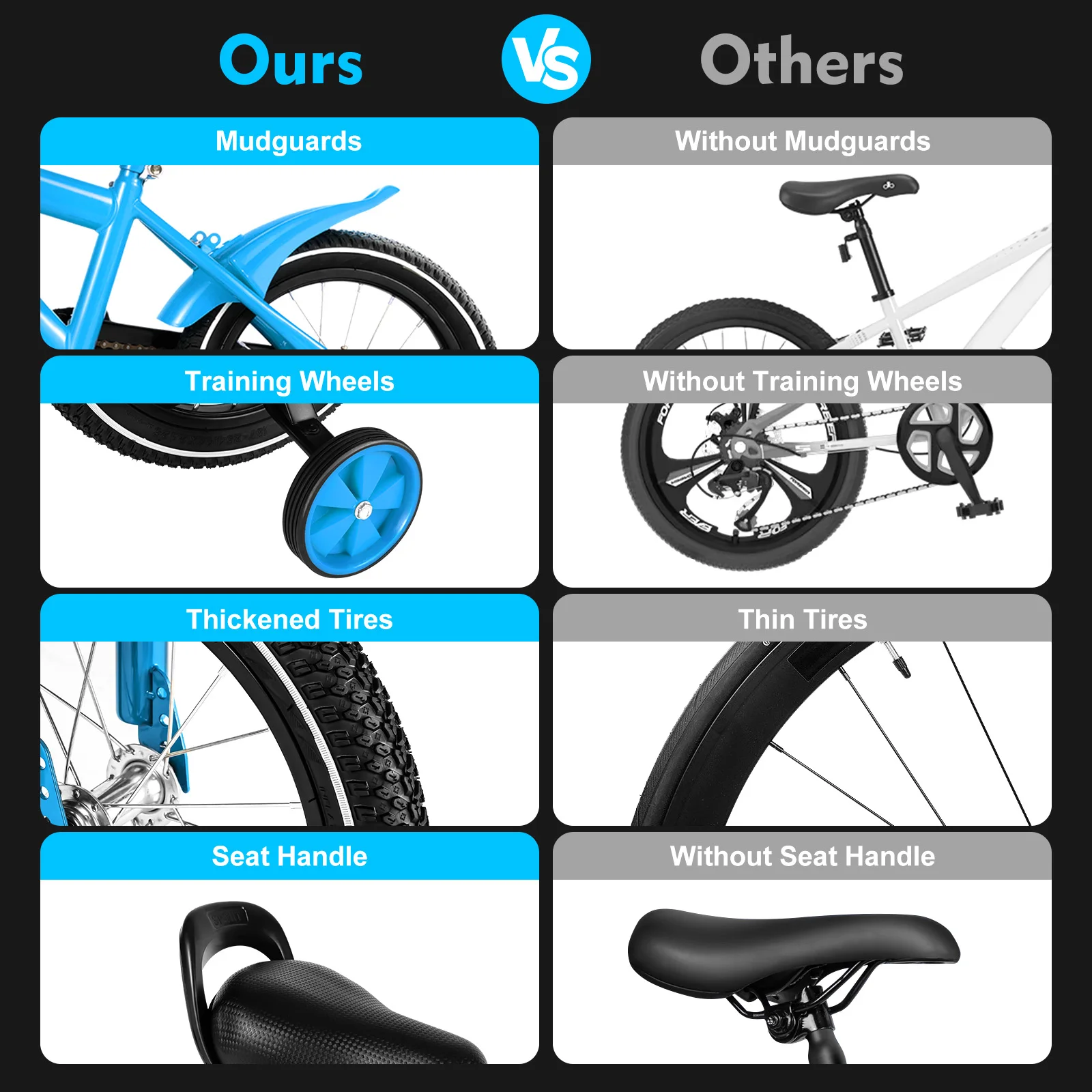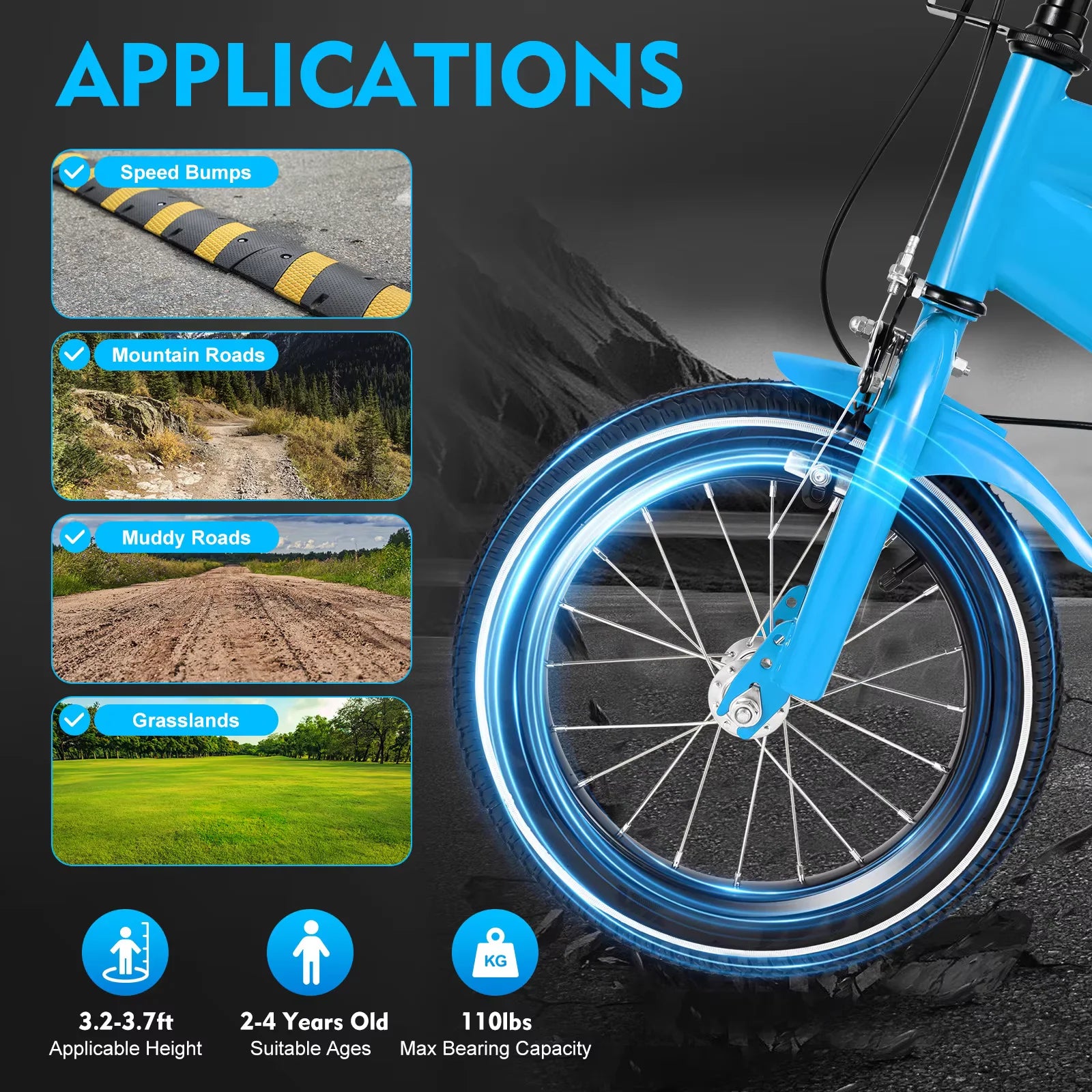 Safe to Bike: The bicycle is designed with two auxiliary wheels to keep balance during a ride and effectively prevent rollover.