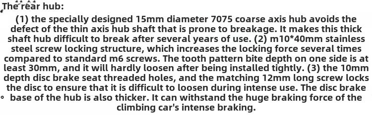 The front and rear use professional screw pair lock + double bearing climbing special flower drum, the durability is relatively ordinary quick-release flower drum or loose bead flower drum is guaranteed from the source. We use professional climbing rims regardless of cost.