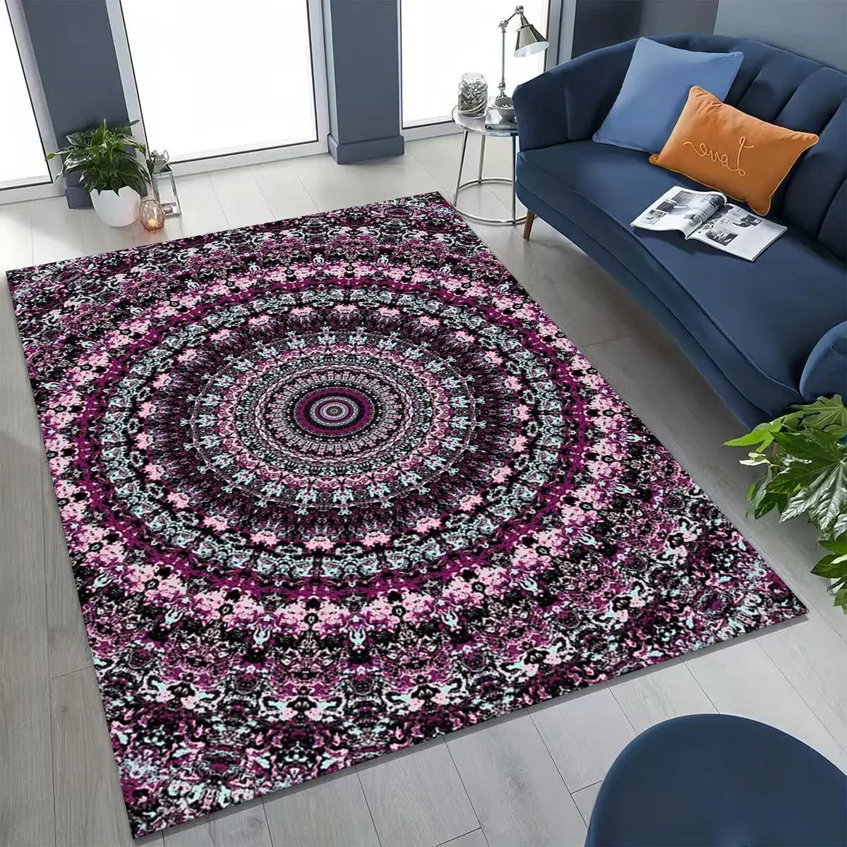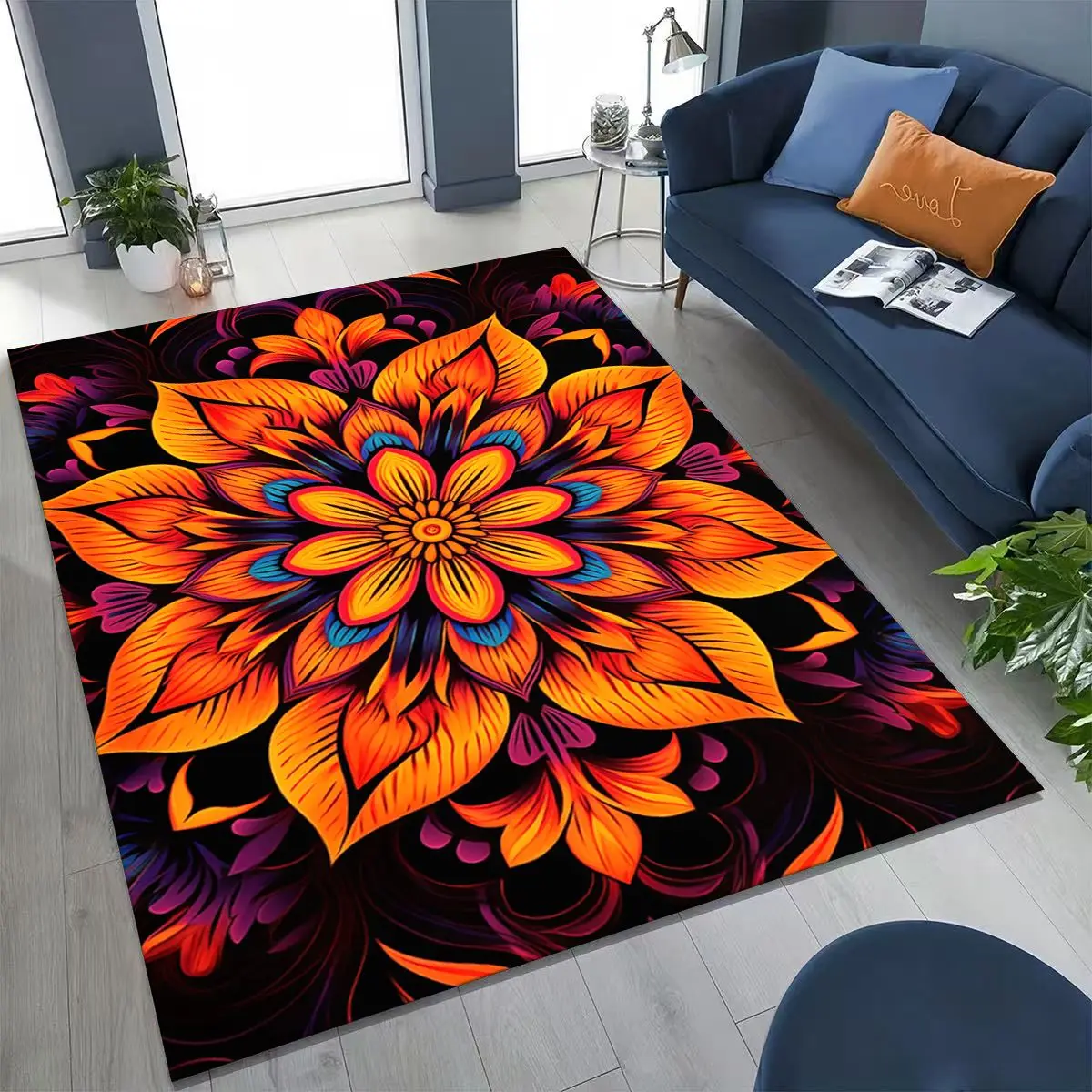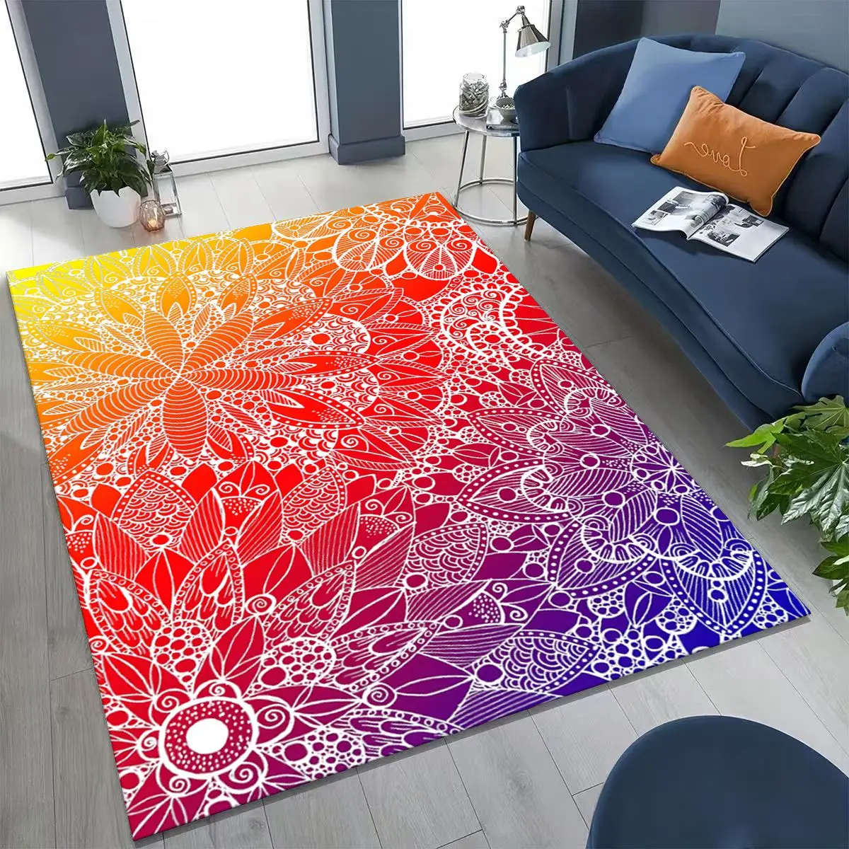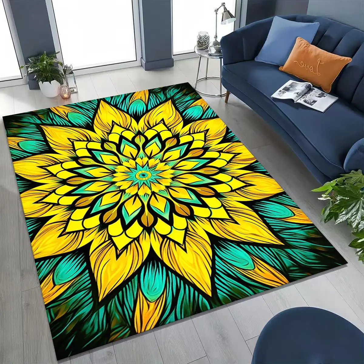 2026 Rainbow Mandala Flower Chakras Yoga Bohemia Art Rug for Bedroom Living Room Sofa Home Doormat Decor,Kid Non-slip Floor Mat