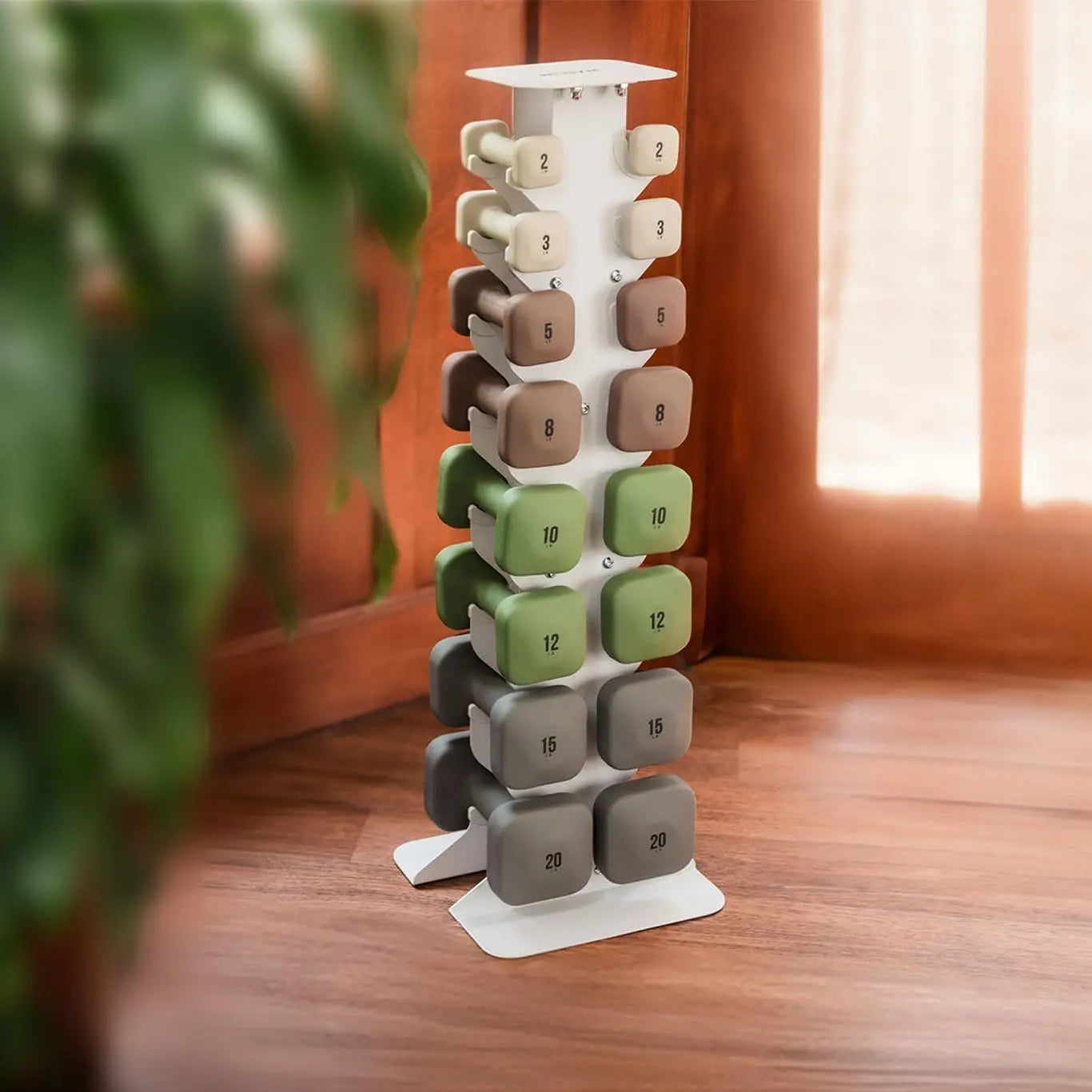 Anti-Slip Handles: Soft textured, anti-slip coating and thicker handles ensure a comfortable, secure grip during every workout Stable Square Sides: Flat, square sides keep dumbbells steady during floor exercises and prevent rolling, perfect for renegade rows and push-ups Home Workout Friendly: Minimize scratches and scuffs while keeping both you and your space safe Stylish Design: Beautiful colors elevate your home gym aesthetic Versatile for All Levels: Perfect for both beginners and advanced athletes, with a wide weight range suitable for everything from Pilates to intense strength training Durable & High Quality: Featuring a solid iron core and a durable PVC shell, our dumbbells are designed for long-lasting performance Eco-Conscious Manufacturing: Made with US-certified, sustainable materials so you can feel good about your fitness choices