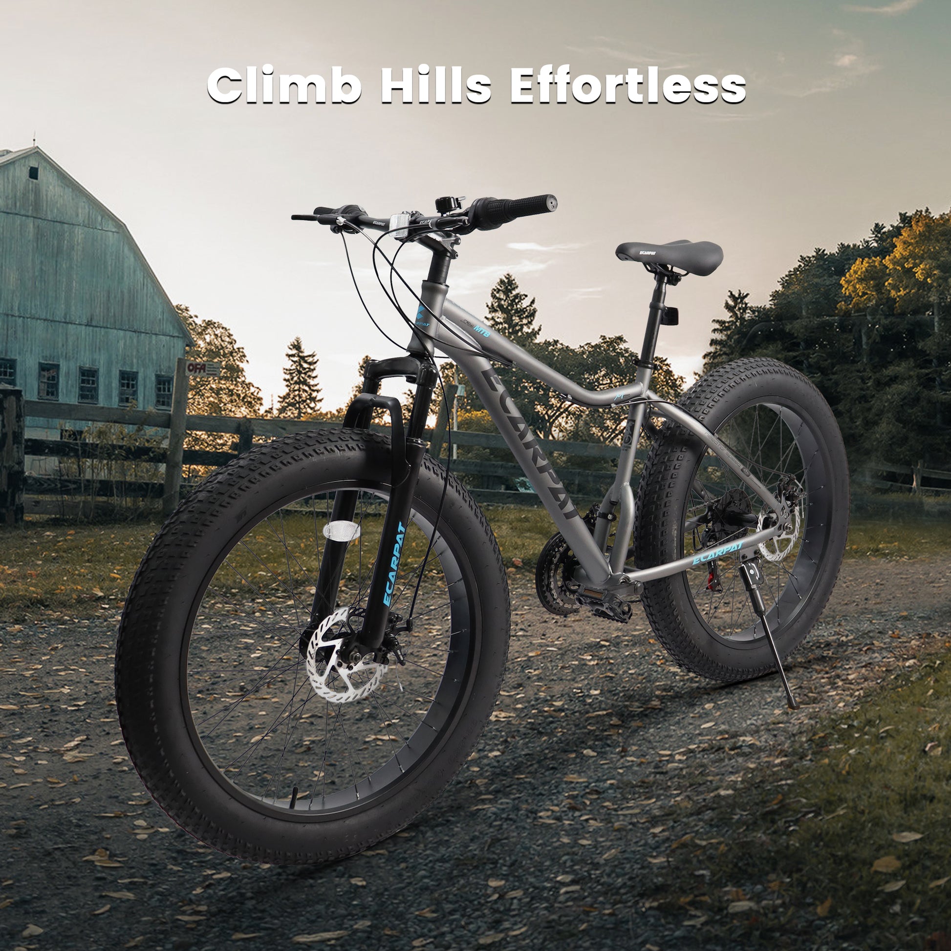 【Strong Multi-terrain Adaptability】This mountain bike is equipped with 26-inch wide tires and a front suspension shock absorption system, making it highly adaptable to various terrains such as off-road, mountain, sand, and snow, providing excellent traction and a comfortable riding experience.