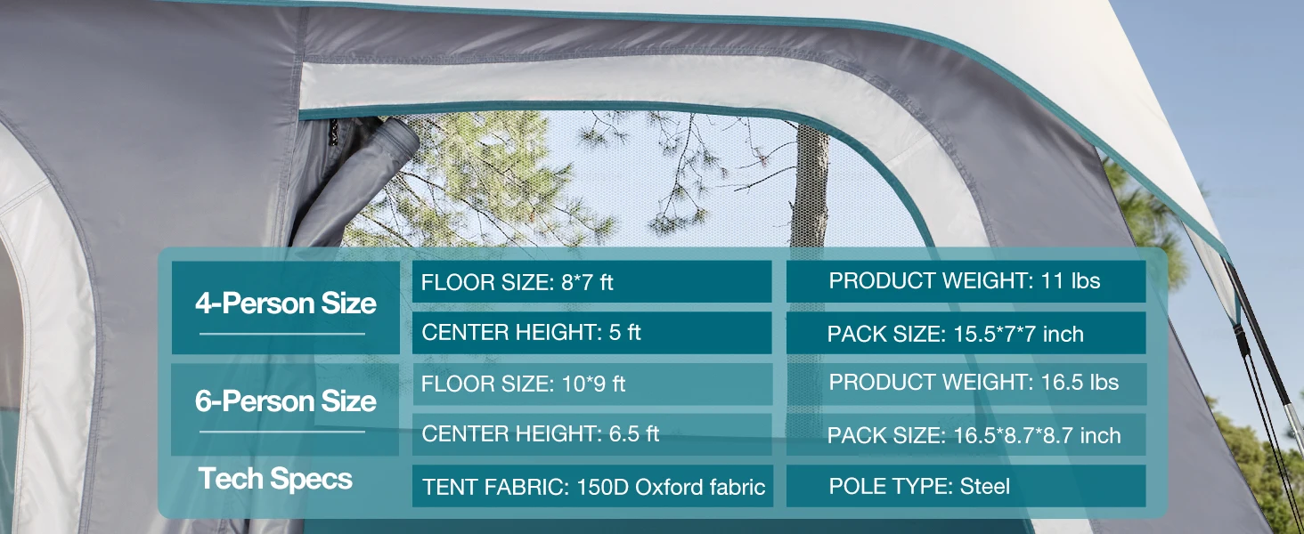 Outer tent material: 150D Oxford cloth