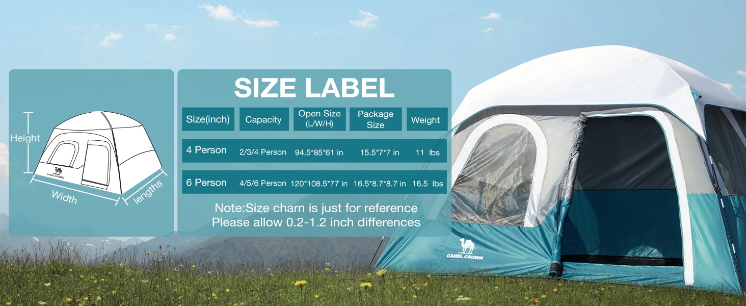 GOLDEN CAMEL 4-6 Person Camping Tents Hand-built Waterproof Portable Sunscreen Beach Backpacking Tent Thickened Camping Hiking