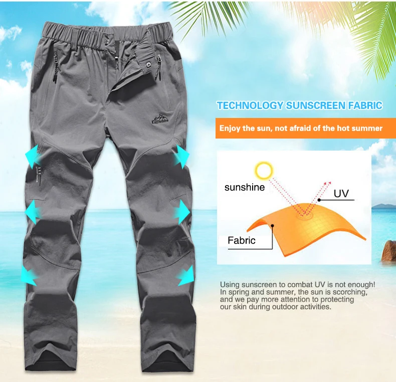 Lightweight and stretchy outdoor pants, free and unconstrained when you exercise, the quick-drying fabric of 90% nylon + 10% spandex can quickly wick away perspiration and dry, and feel comfortable.