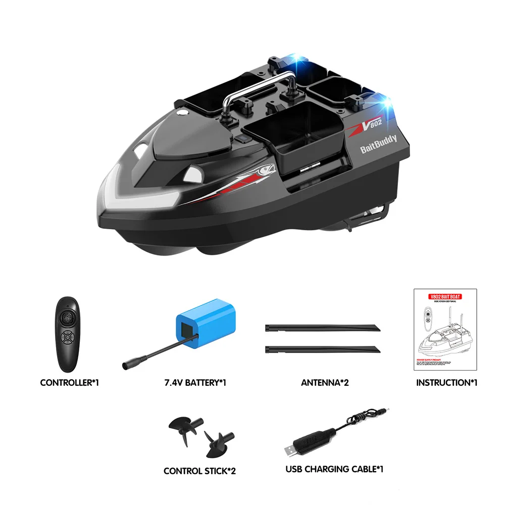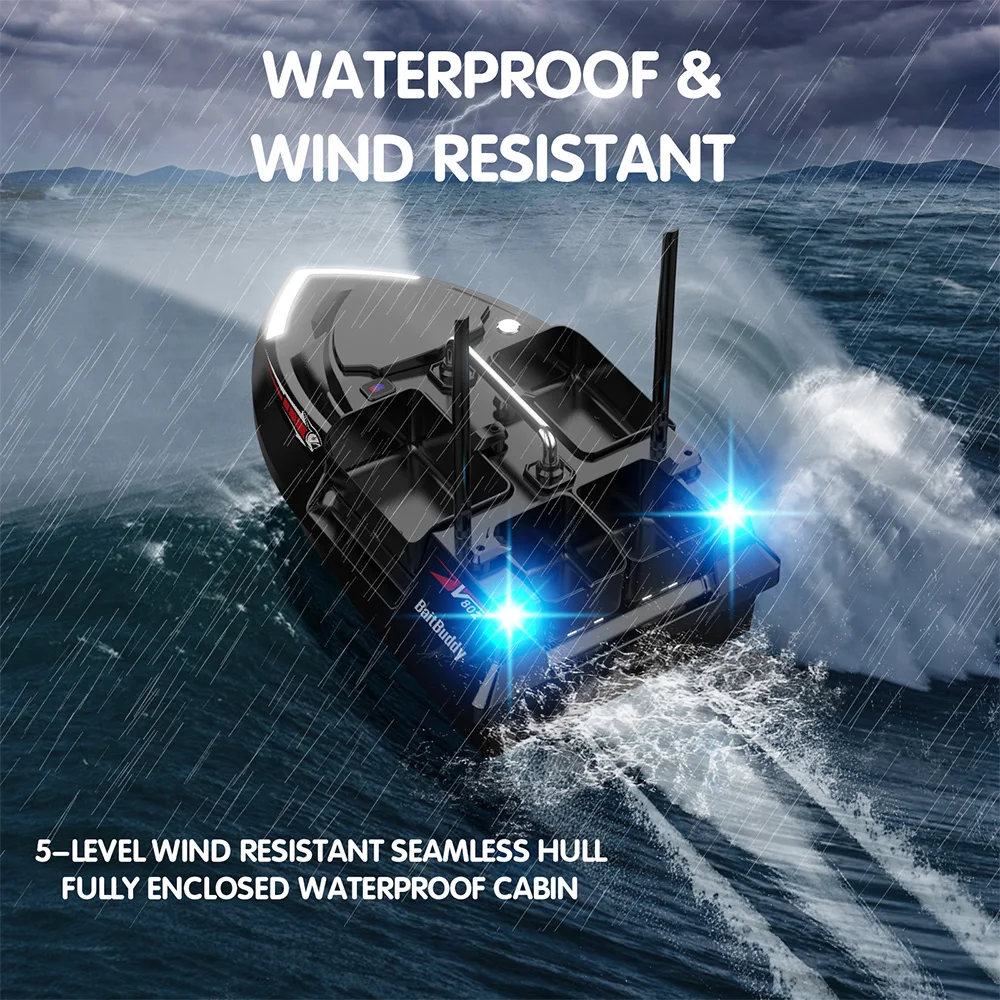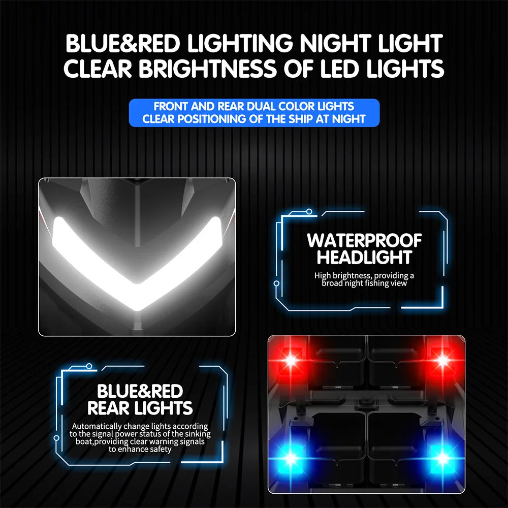 Designed for both day and night use, the boat includes a high-brightness front navigation light and rear steering indicator lights for increased visibility and control. It also supports hook-release and line delivery functions, giving you complete flexibility in your baiting strategy.