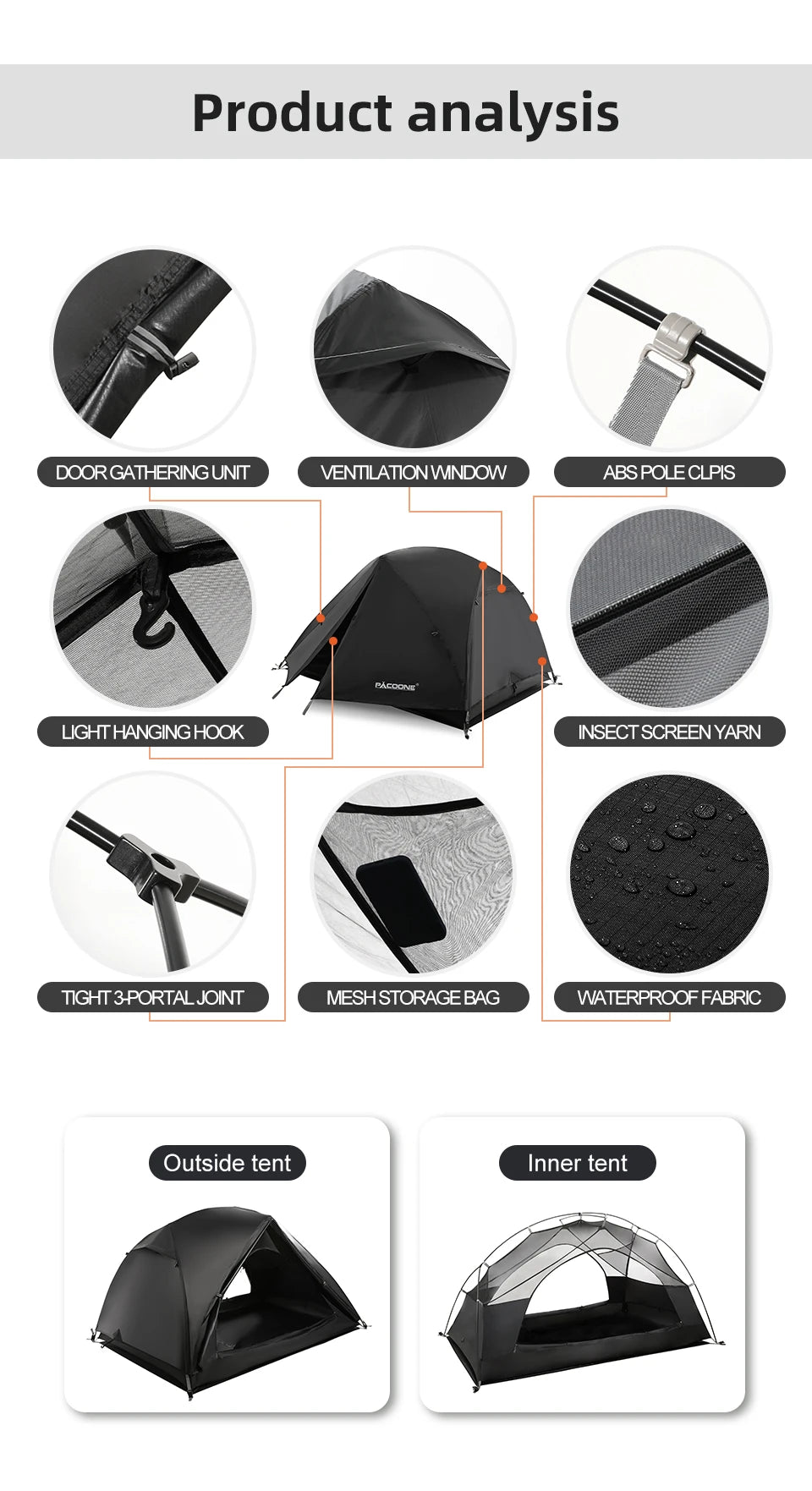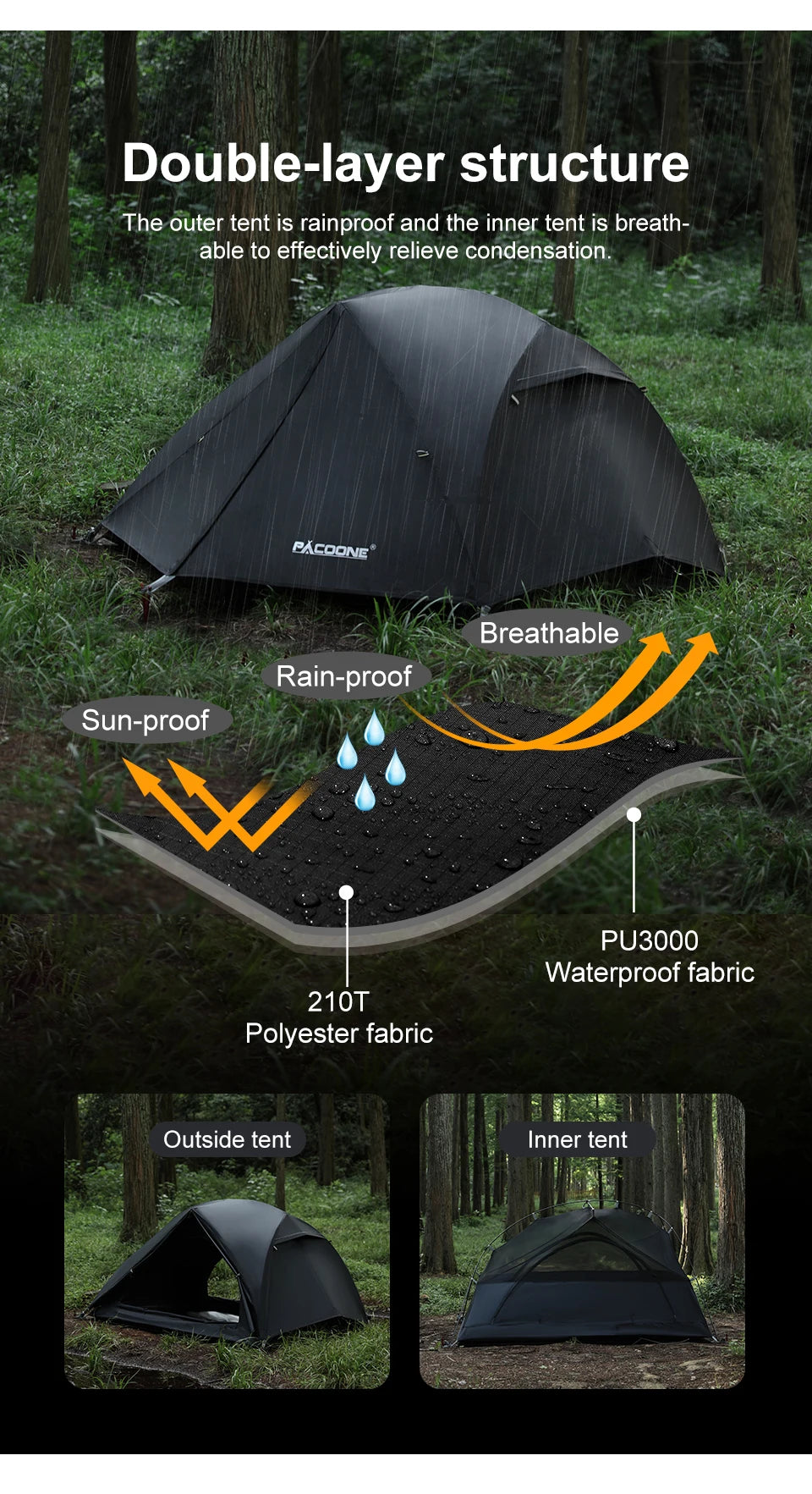 Outside Tent Waterproof Index: 2000-3000 mm