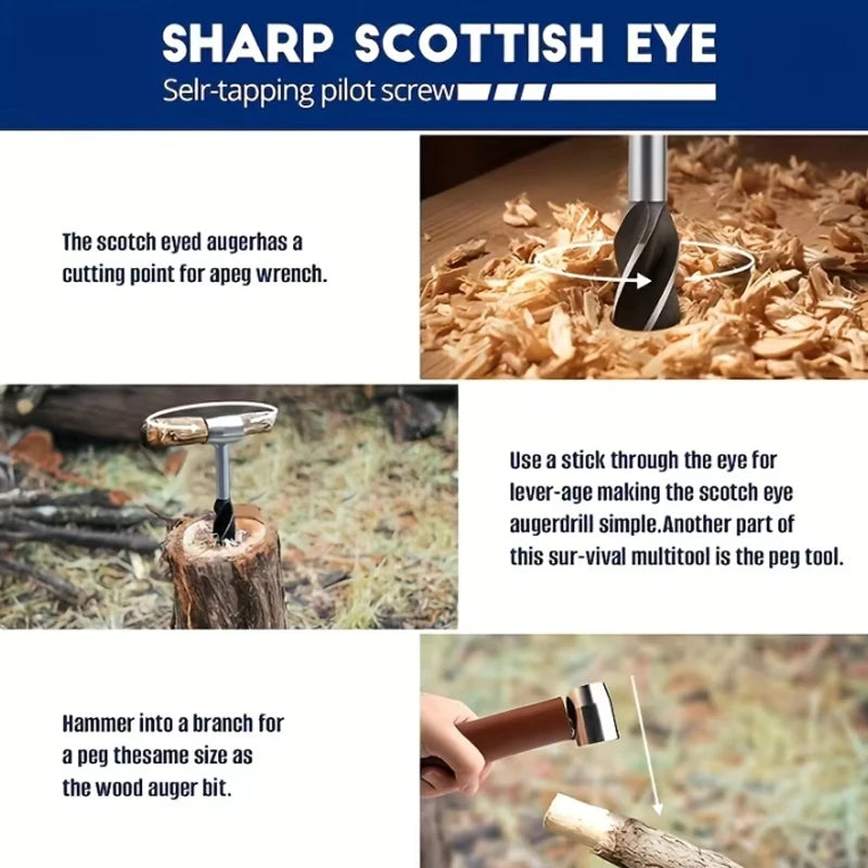 Portable Outdoor Survival Woodworking Tools Auger Drill Bits Bushcraft Settlers Hand Drill Punch Tool For Camping Outdoor Hiking