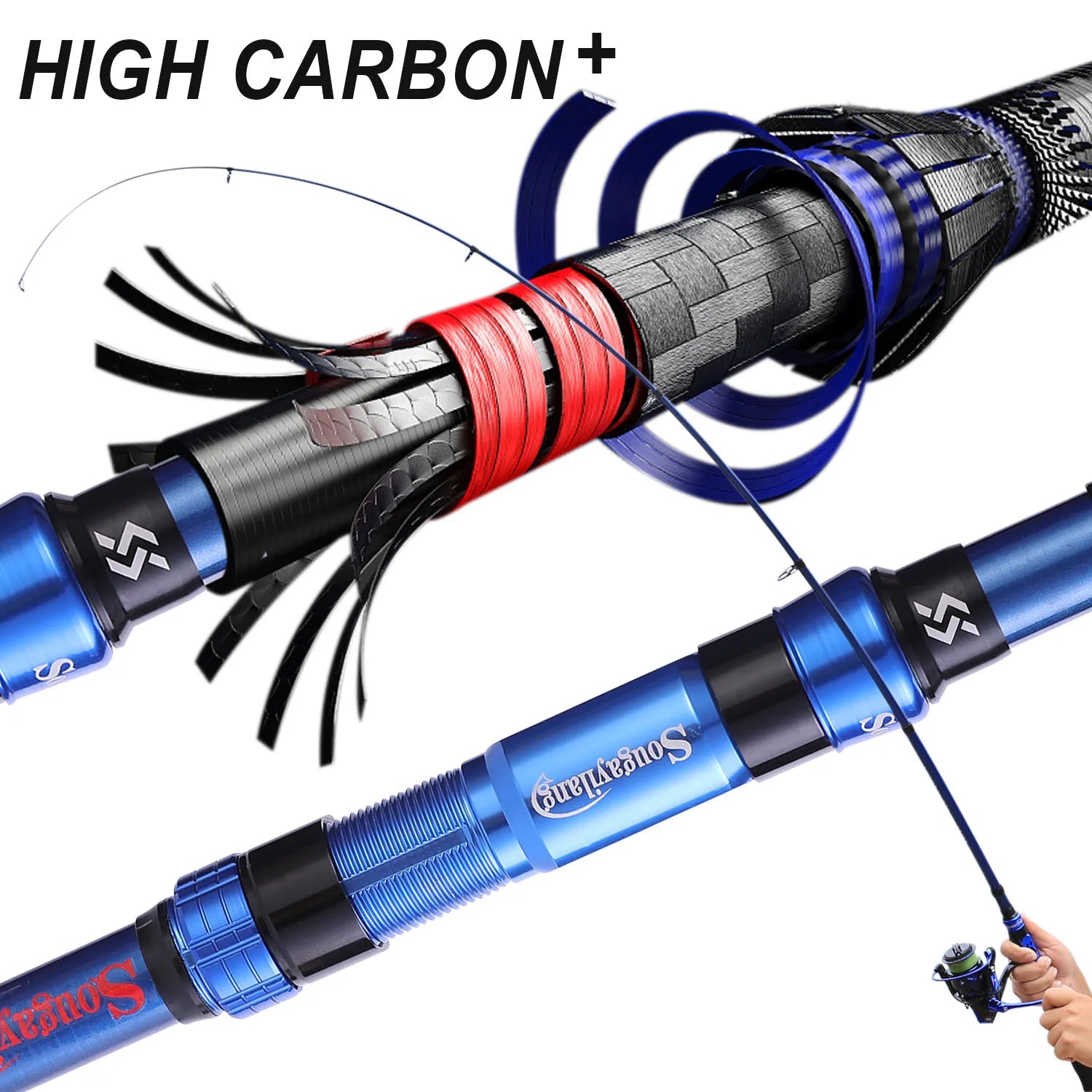 1.Sougayilang telescopic fishing rod are constructed with High Density 24-Ton Carbon Fiber reinforced with Fiberglass Composite for power and elasticity ;