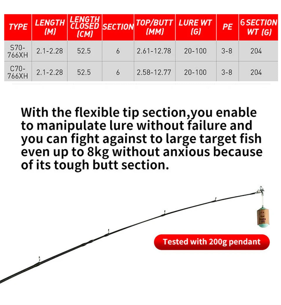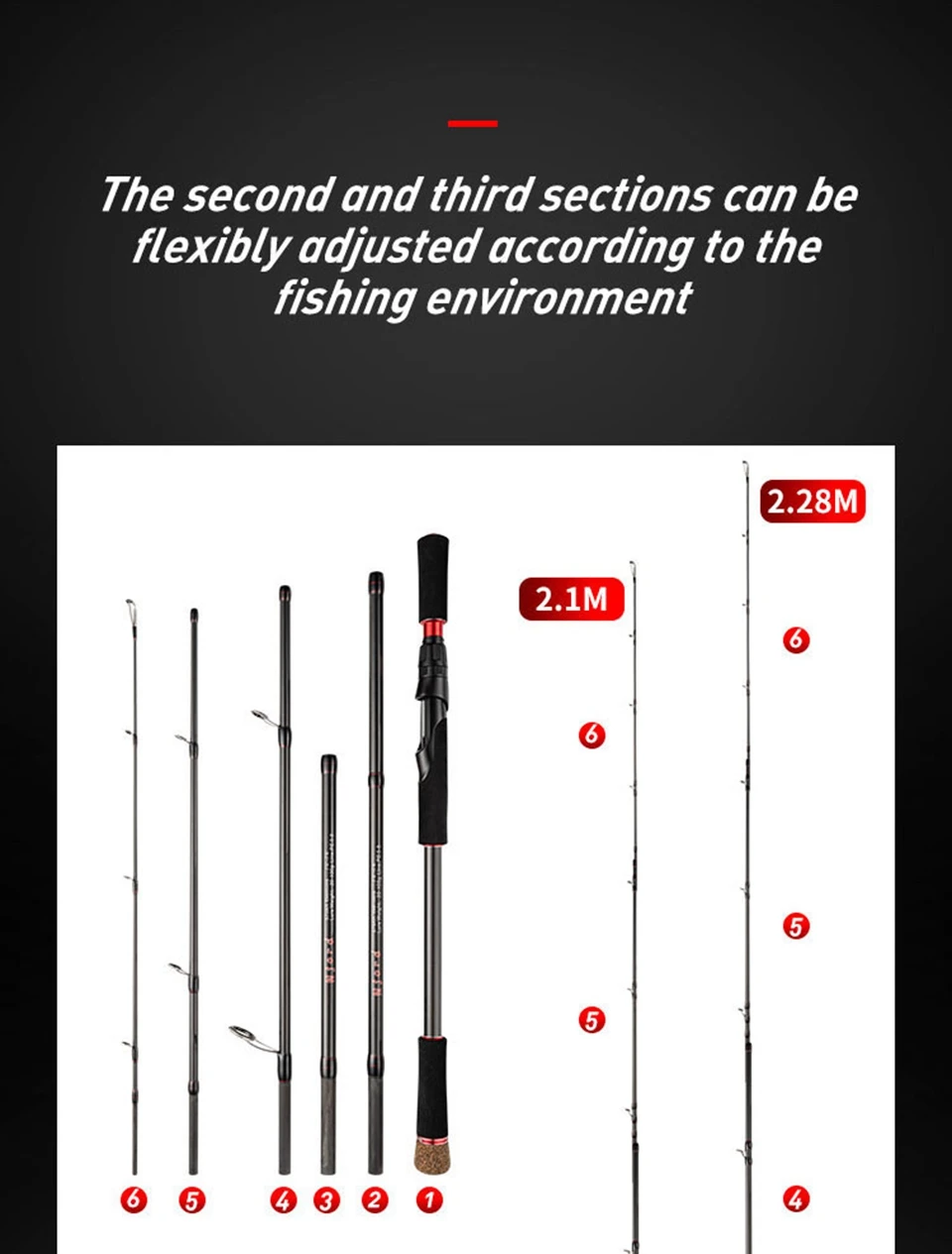 Travel Fishing rod For Big game 2.1m 2.28m SPinning Rod Casting Fishing Rod JerkBait Rod 5 Sections