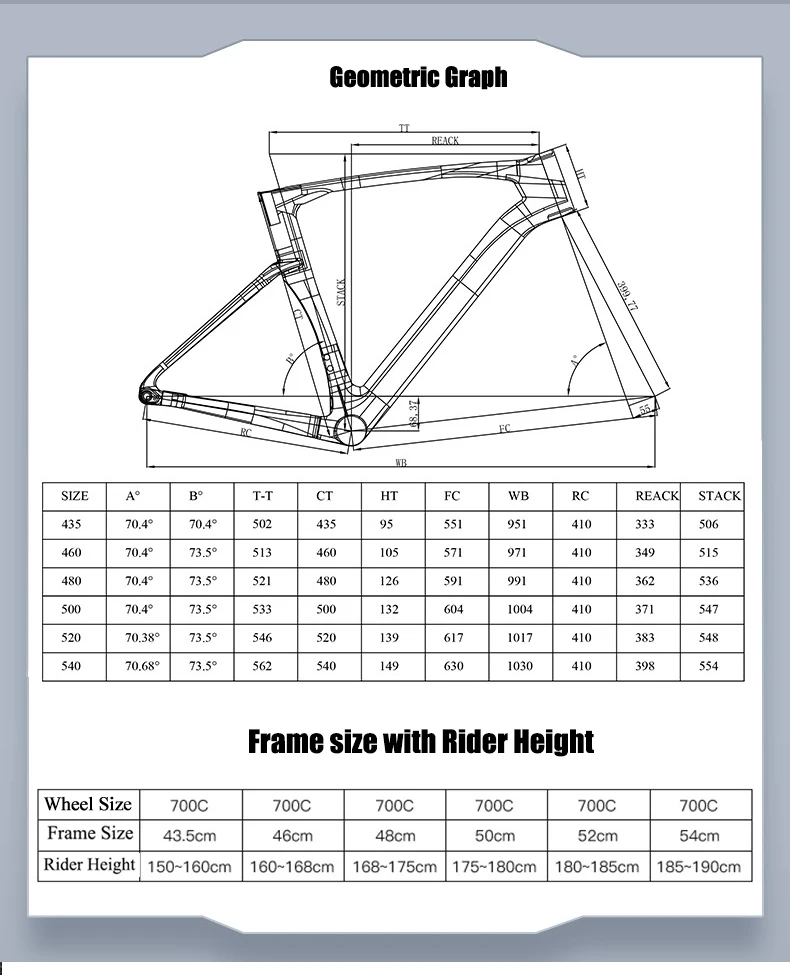 Frame Height: 43.5cm / 46cm / 48cm / 50cm / 52cm / 54cm
