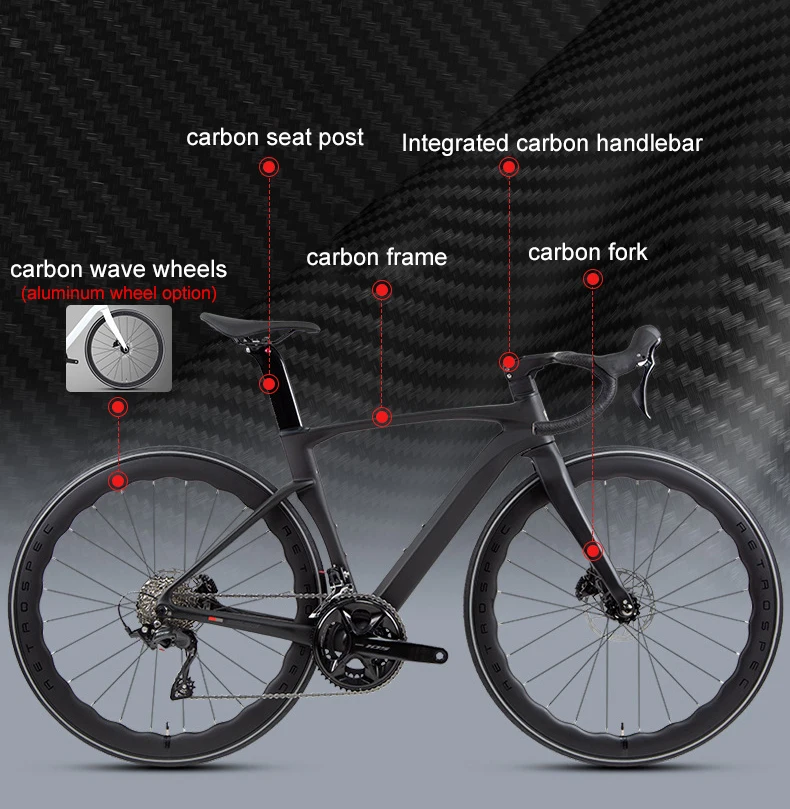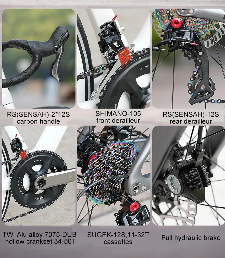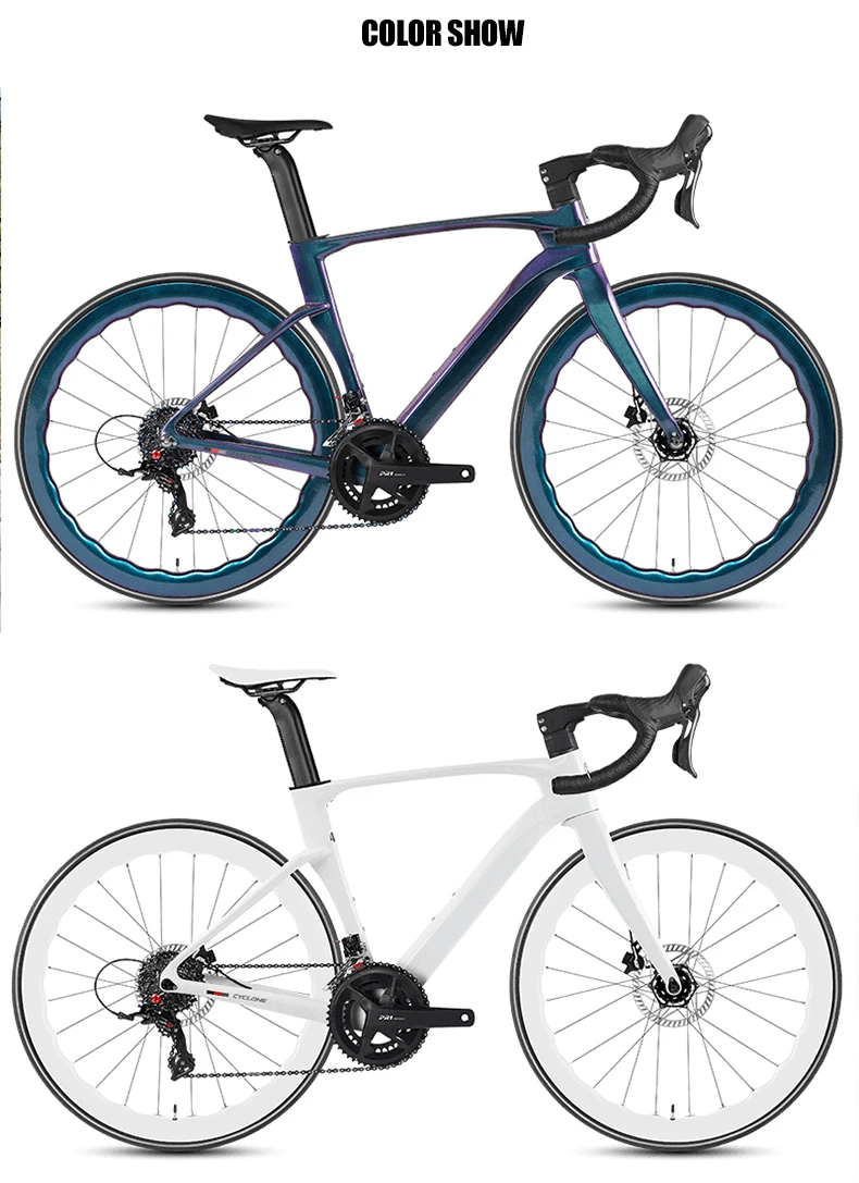 Specification: TWITTER CYCLONE Carbon Road bike 2x12s /RS-2*12S Full Hidden Inner Routing Racing Bike/ ith 50mm Carbon Wheels For adult/ cheap hydraulic disc brake road bikes for sale / carbon frame with 105 deraillleur cycling bicycle