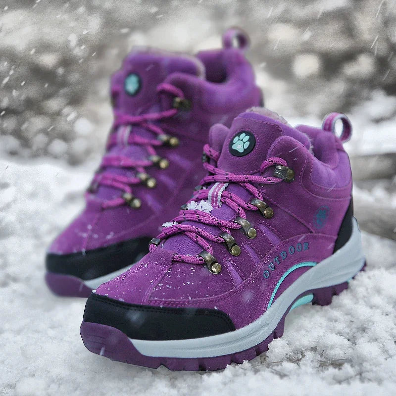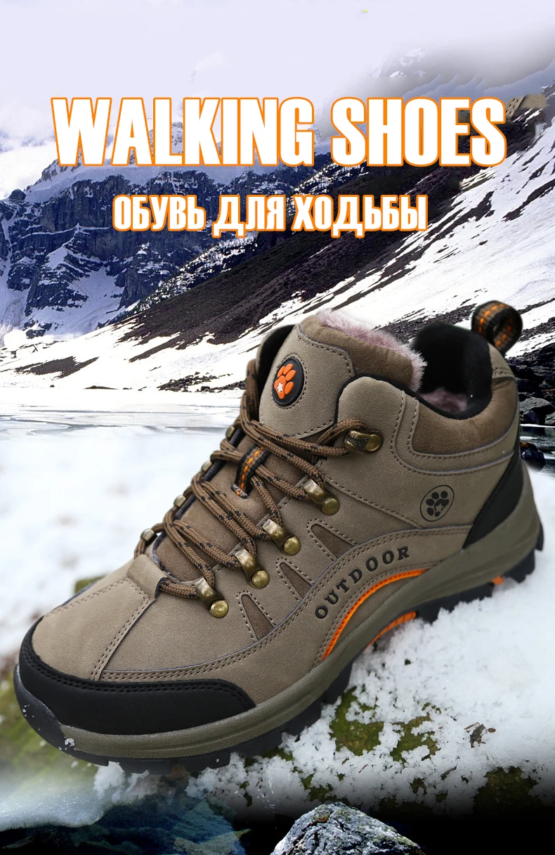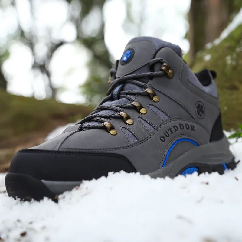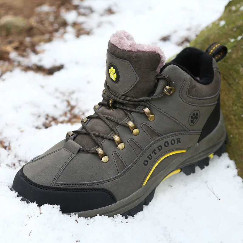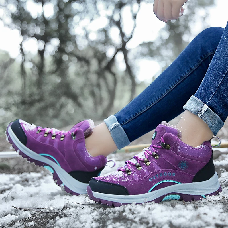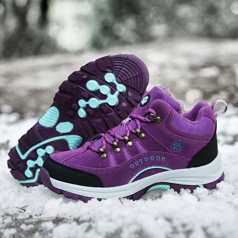 Unisex Winter Plush High Top Hiking Shoes Women Outdoor High Quality Keep Warm Snow Casual Sneakers Men Non-slip Trekking Boots